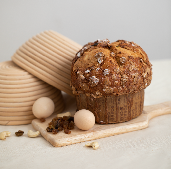 The Brioche De Noël is the French take on the Italian Panettone usually prepared for Christmas and New Year in Europe and South America. It is made through a long process, giving the cake its distinctive fluffy characteristics. It contains orange and lemon zest, dry raisins, along with Vietnamese cashew nuts, all macerated in Rhum.